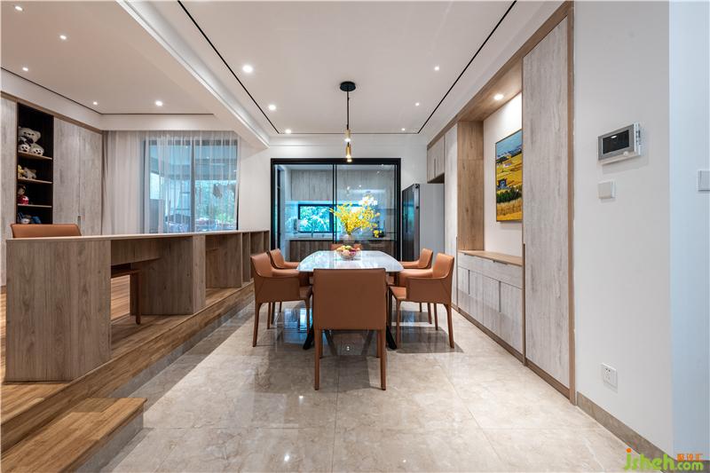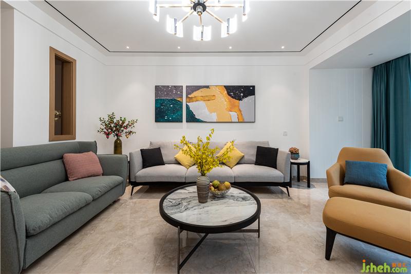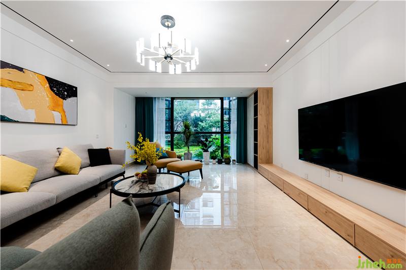 本案位于一樓,外面植被茂密,但由于是一樓,有些空間會有些暗,業(yè)主理想中“家”的模樣:陽光充足,寬闊自由,每一縷時光都自有歡喜。于是,“設計”的痕跡被抹去,昆明裝修設計打通原始陽臺,以大大的落地窗納自然光線入內,整個空間輕盈而通透。