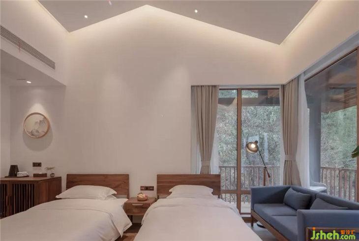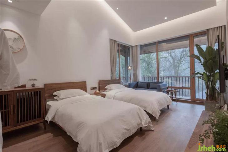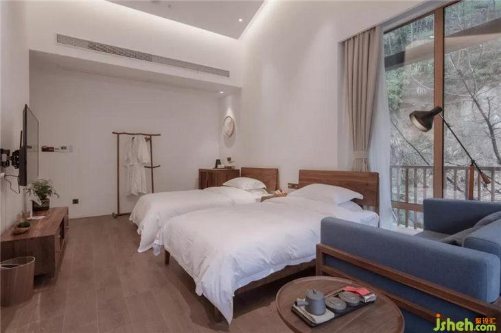客房的一角充滿書香氣息,讓人想起古人“矮紙斜行閑作草,晴窗細(xì)乳戲分茶”的閑適生活。