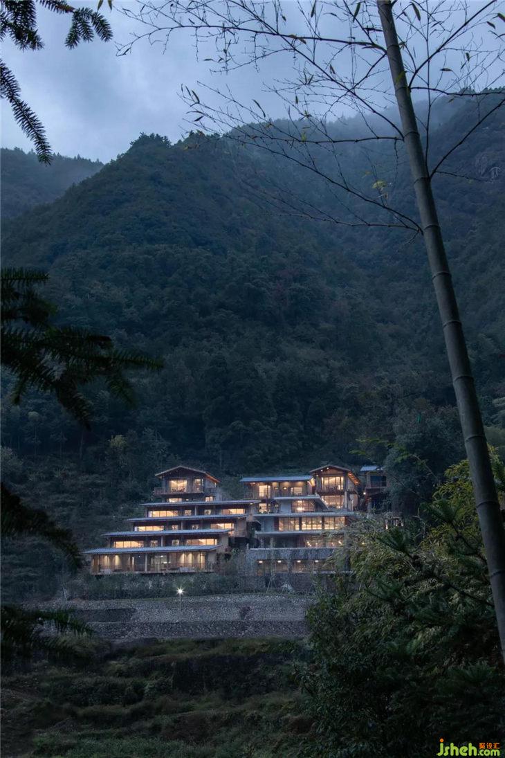 宋代詩人沈晦在《初至松陽》詩中曾這樣描繪松陽:“惟此桃花源,四塞無他虞?!闭驹诿袼薜挠^景臺俯瞰青山幽谷,會覺得詩中描繪的“桃花源”便是眼前的景象?!爸矣谧匀?,融于山野”是民宿選址的初衷,也是最大的賣點(diǎn)。