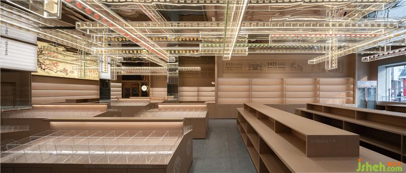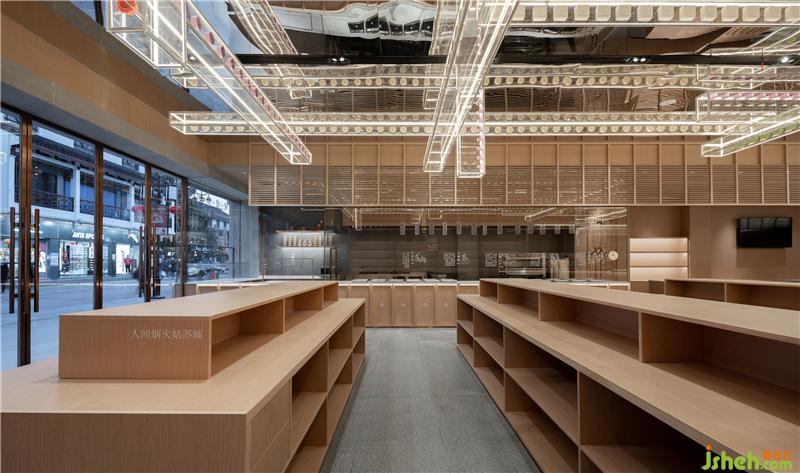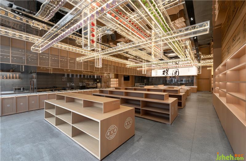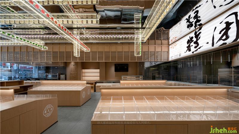 Huang Tianyuan, as the first batch of "intangible cultural heritage" brand of traditional cake making techniques in Jiangsu Province in 2009, should inherit its cake making techniques in its space field. On the glass surface of the "intangible cultural heritage exhibition area", a series of cake making techniques are springing up in the space, so that the invisible techniques can be reproduced and inherited.