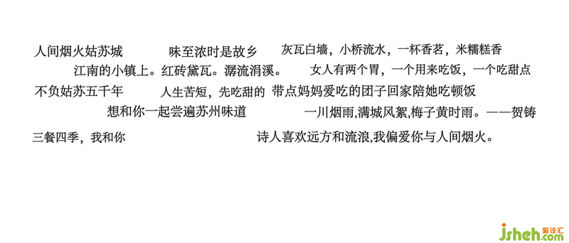 世界上最偉大的藝術和最優(yōu)征服力的武器是語言,人類的進步與文明就是從擁有語言溝通開始的。空間中隨處可見的關于蘇州味道的言語,是餐廳設計給予人的溫暖。在這里,讓每個人都能尋找內心深處的對話。