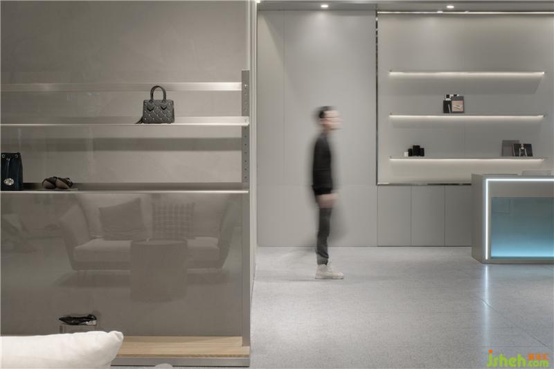 產(chǎn)品線上,一尚門蘇州中心店以簡(jiǎn)約自然為主打風(fēng)格,匯集了國(guó)內(nèi)外優(yōu)質(zhì)的原創(chuàng)設(shè)計(jì)師品牌,有知性優(yōu)雅的Comme Moi, IMMI,潮流時(shí)尚的content, MICartsy,國(guó)際流行的MSGM, We11done, JUUN.J等。而為了更好的迎合產(chǎn)品的呈現(xiàn)杭州店鋪設(shè)計(jì),“灰”便成了空間的特有屬性,在工匠與時(shí)尚中尋找平衡。手工處理的藝術(shù)漆面與金屬質(zhì)感的墻面材料是傳統(tǒng)手工與時(shí)尚潮流的碰撞。