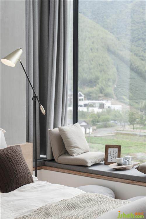 在落地玻璃窗邊放置榻榻米座椅,可以品茶觀景,十分愜意。