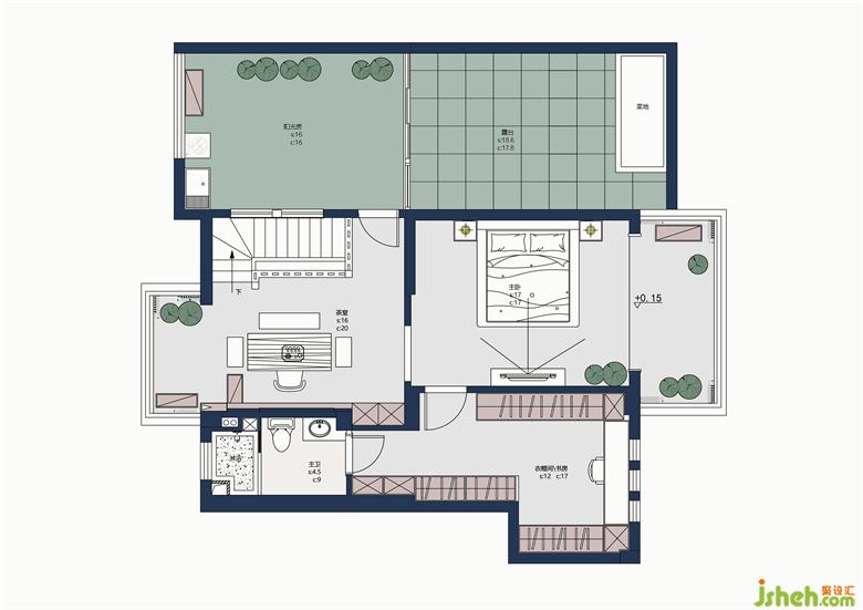 如圖,現(xiàn)澆以后二樓茶室空間得到進(jìn)一步拓展。同時(shí)還為主人房打造了一處倚窗看遠(yuǎn)山的休閑地臺(tái),好不自在。樓梯的改造恰恰給女主人保留了完整的衣帽間,應(yīng)該誰(shuí)都會(huì)羨慕吧!