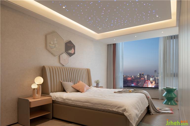 選材在滿足設(shè)計(jì)需求的前提下,著重從環(huán)保、品質(zhì)和經(jīng)濟(jì)等方面著手。地面整體選擇大板仿石材磚通鋪,增大空間延伸感和視覺感,淺灰色的顏色也在空間中有提亮空間安靜氣質(zhì)的效果;大面積墻面選用米灰色肌理壁紙,純色的壁紙,搭配一定紋路的肌理,現(xiàn)代別墅設(shè)計(jì)讓空間干凈整潔,同時(shí)又更有質(zhì)感;臥室均以多層實(shí)木地板搭配使用,讓臥室更具溫馨舒適的感受。全屋創(chuàng)新性的采用極簡窄邊框推拉門,線條感極強(qiáng)的門框搭配金屬夾絲的玻璃門板,與金屬不銹鋼結(jié)合使用,設(shè)計(jì)感極強(qiáng)。全屋充分考慮收納系統(tǒng),在柜體木制于金屬交接的地方均留有工藝縫處理,大幅度提高整體品質(zhì)。臥室除了壁紙的鋪貼外,床頭背景結(jié)合布料硬包以及皮革面料搭配金屬使用,品質(zhì)感十足。女兒房頂面使用光纖燈,滿足孩子對(duì)于星空的幻想。