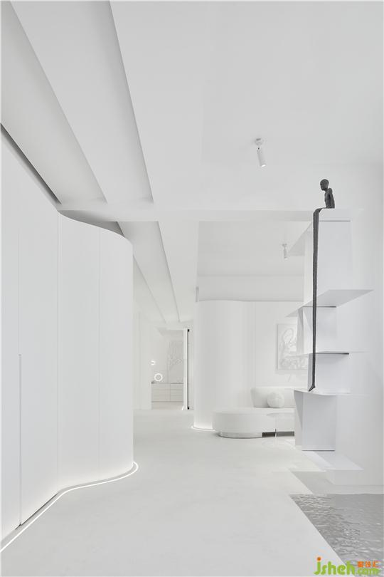 辦公室設(shè)計而我們的這個白色空間,也想要通過“無雜質(zhì)”的色彩語言,緩緩敘述“歷經(jīng)世間滄桑和時間的洗禮,萬事萬物都會褪去浮華,展現(xiàn)出其最本真的原始狀態(tài)”,期望可以引導(dǎo)每一位進(jìn)入的觀者,得以在純白色的空間中,在無干擾的狀態(tài)下,抽離出來,回想自己的閱歷和經(jīng)驗,逐漸拋去疲累和負(fù)擔(dān),在自我的關(guān)注里對內(nèi)不斷求索,最終回歸到自我輕靈的“本真”和“初心”。