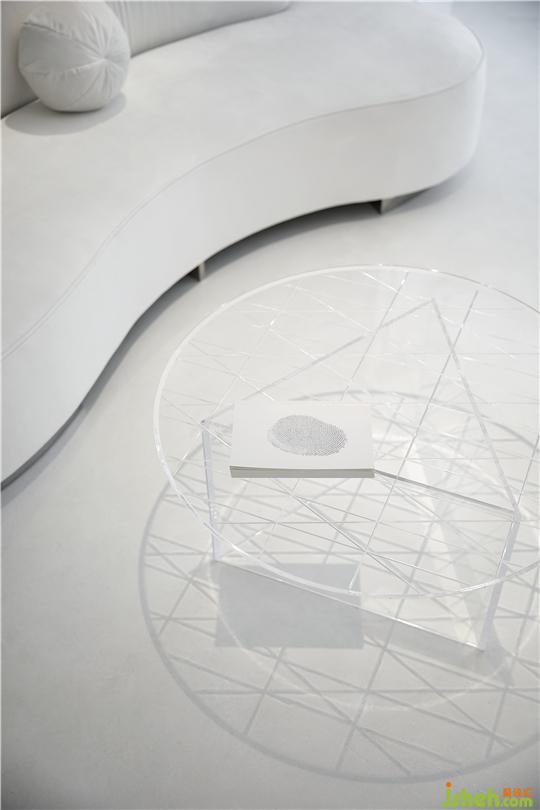 我們的這個空間,是一個純白色的空間。白色的墻頂?shù)仄崦妫咨哪久?,白色的金屬板,白色的皮革,白色的陶瓷,超白的玻璃,我們試圖營造一種極致的白色空間視覺體驗。