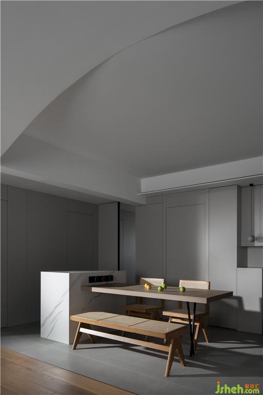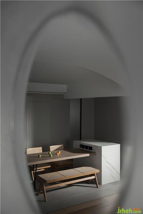 空間原始結(jié)構(gòu)為兩居室空間,客餐廳為長廳,洛陽裝修設(shè)計在研究承重結(jié)構(gòu)后,對原始結(jié)構(gòu)進(jìn)行了大面積的改造。由于客廳及陽臺景色為洛河光景,我們就拆除了一個臥室與客餐廳打通,來增大采光和景觀面。同時,考慮到業(yè)主一人居住,工作日均在單位就餐,只有周末偶爾做一些簡餐,所以我們將中廚和衛(wèi)生間縮小,增大公共空間面積,保留了一間大臥室;而在客廳區(qū)域,我們摒除常規(guī)會客沙發(fā)擺放形式,以地臺結(jié)合坐墊靠包的靈活方式,滿足不同場景下的生活格局;在靠陽臺的部分,我們空出大量面積,凸顯空間的開闊性,賦予空間無限可能:女主人可以健身、瑜伽、觀影、看書,坐,臥,行,走,均可達(dá)到無拘無束的自由品質(zhì)空間狀態(tài)。