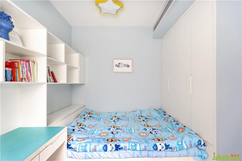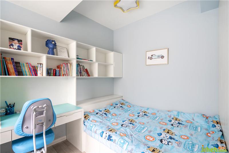 兒童臥室,淡藍(lán)色系無疑是最大亮點(diǎn)了,孩童時代,藍(lán)色代表童真美好與純潔,書柜兒童書桌有效融入空間,不突兀,藍(lán)色雕塑擺件,又一次體現(xiàn)了藝術(shù)的氛圍感。