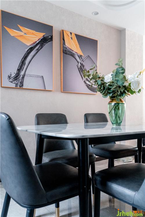 通觀整個空間的擺件,人像雕塑,墻壁的照片,以及其他擺件裝飾,無一不體現(xiàn)藝術(shù)和質(zhì)感。對于家無論以哪一種形態(tài)呈現(xiàn),設(shè)計的語言都是對生活的一種思考和回歸,每一件設(shè)計作品不只是靜止的,還是一種連接,一種有溫度的連接。家裝設(shè)計