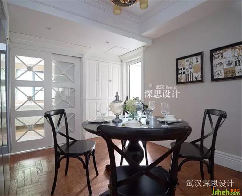 設(shè)計(jì)師在注重細(xì)節(jié)的精致感和材質(zhì)的品質(zhì)感的同時(shí),更注重空間優(yōu)雅知性的文化格調(diào)的經(jīng)營(yíng)與把握。在設(shè)計(jì)手法上,整體設(shè)計(jì)簡(jiǎn)練、優(yōu)雅、沉靜,空間色彩以輕咖色調(diào)配以深木色,表達(dá)空間平和內(nèi)斂的氣質(zhì),精致的美式線條豐富了空間的華美感,深木色的實(shí)木地板選擇了簡(jiǎn)潔的拼花圖案,沉穩(wěn)中又包含了變化。