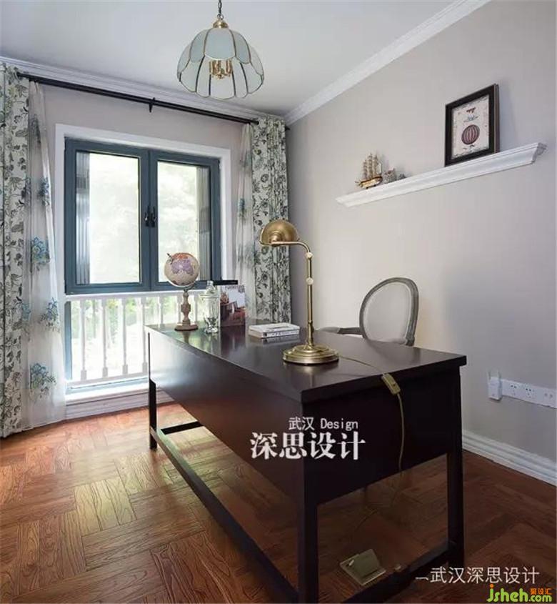 優(yōu)雅沉靜的書(shū)房,窗外綠意盎然,在這里看書(shū)品茶輕松而愜意。裝修公司
