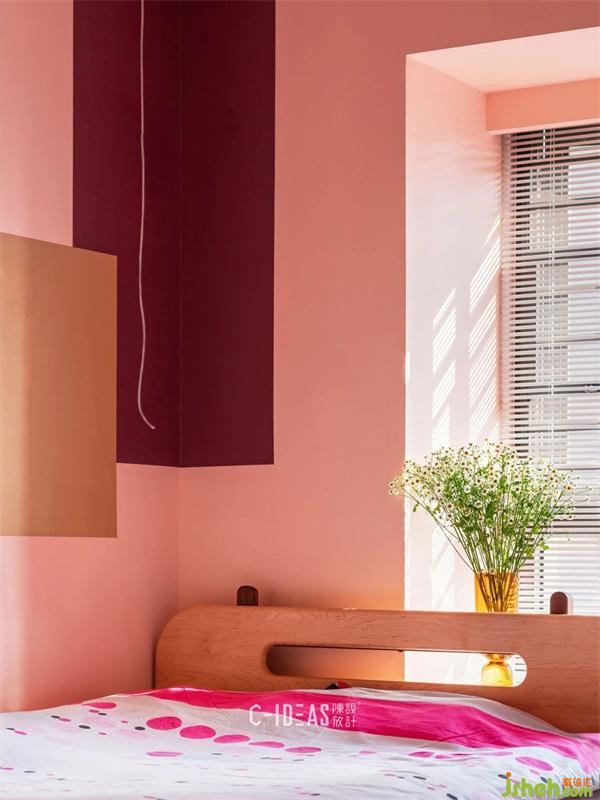 色彩繽紛的休憩空間,一抹斜陽穿過百葉窗簾,在墻上留下溫柔筆觸。