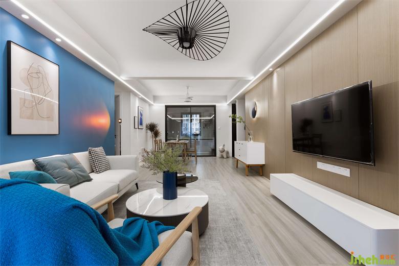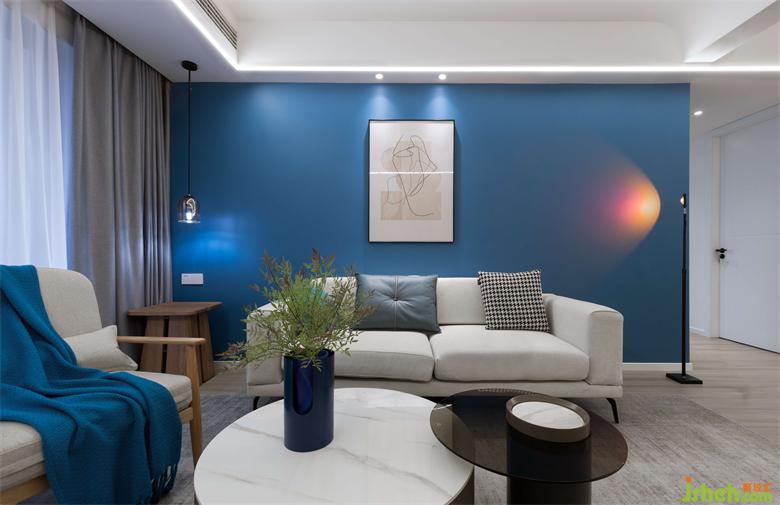 業(yè)主喜歡藍色元素,裝修設計主題基調(diào)以藍色為主。團隊結(jié)合業(yè)主的想法,打造一個回歸生活本質(zhì)、身體和靈魂能得到真正氣息的生活場所。在此可以遙立于世,暫時遠離喧囂,來一場心靈的放空之旅。裝修設計