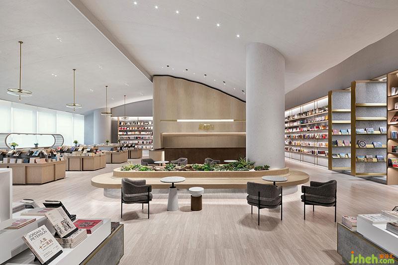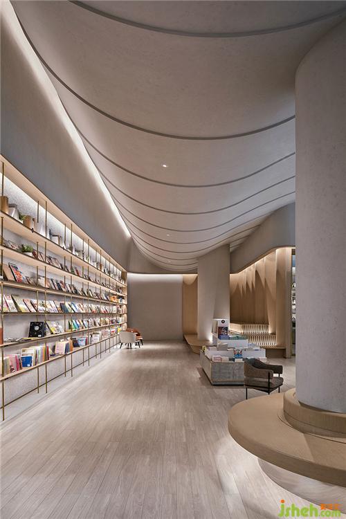 寬敞而通透的體量,為不同類型的書架提供充裕的空間,原木色書架和中島書柜打造濃厚文化氛圍。