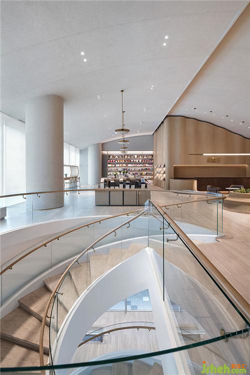 通過一個(gè)采光充足的回旋梯,開啟三樓空間敘事。裝修公司