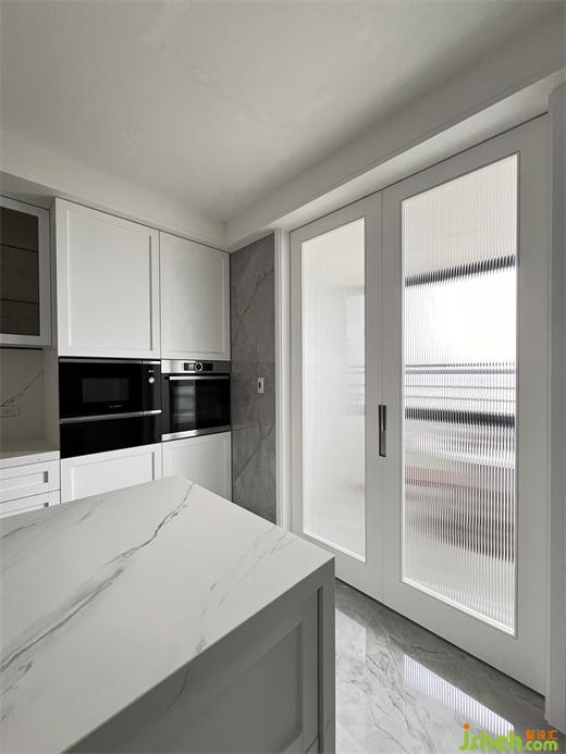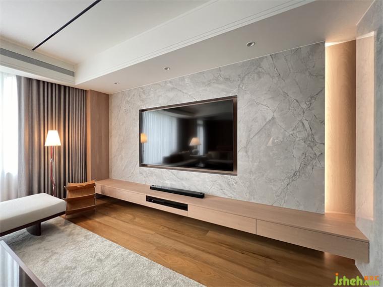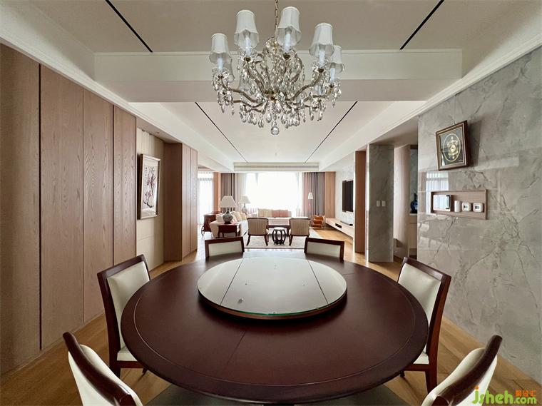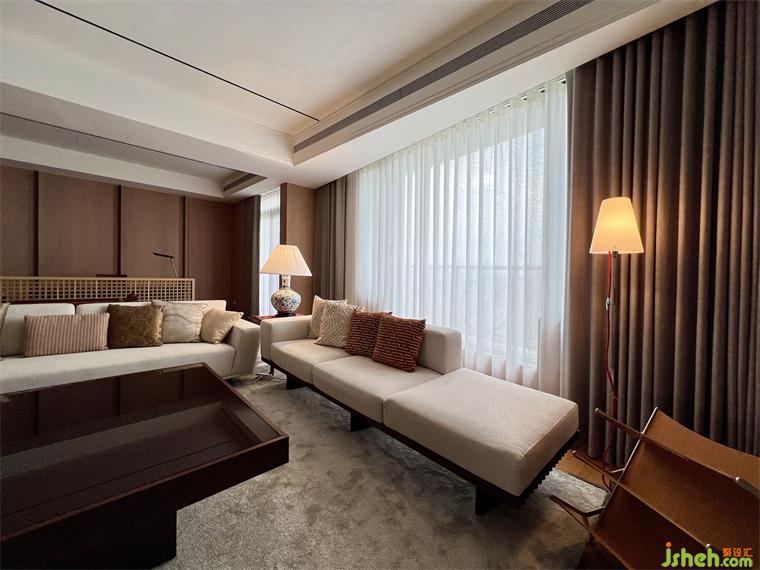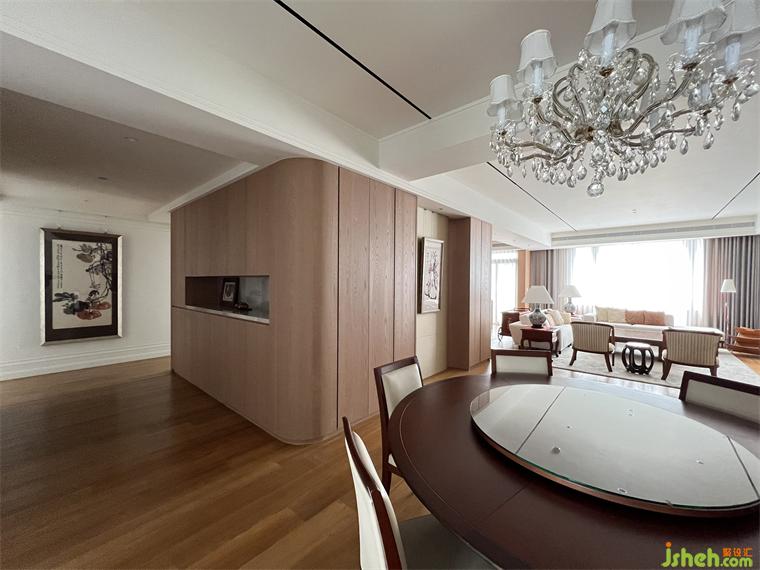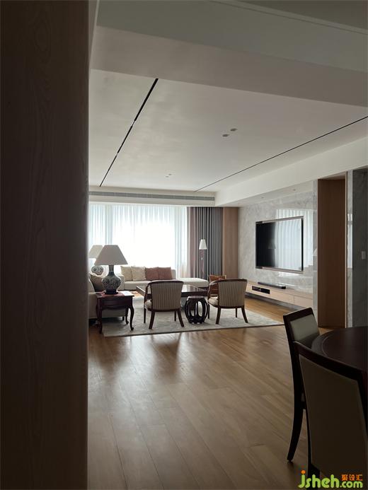 在公領(lǐng)域區(qū),將客廳.餐廳.廚房及休息區(qū)等空間,排布在橫向軸線上,營造出空間的景深,也讓雙向空氣陽光能夠流通在每一個角落,廚房二側(cè)的門片設計,豪宅設計滿足開放或私密的需求,視覺上也讓整個公領(lǐng)域空間得以無限延展,將二邊窗外風景盡收眼底,每當黃昏,從窗外撒下的夕陽余暉,照映在室內(nèi)的實木地板上,反映出家的溫暖與舒適。