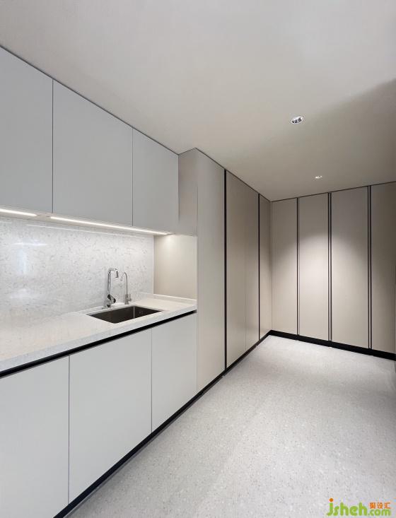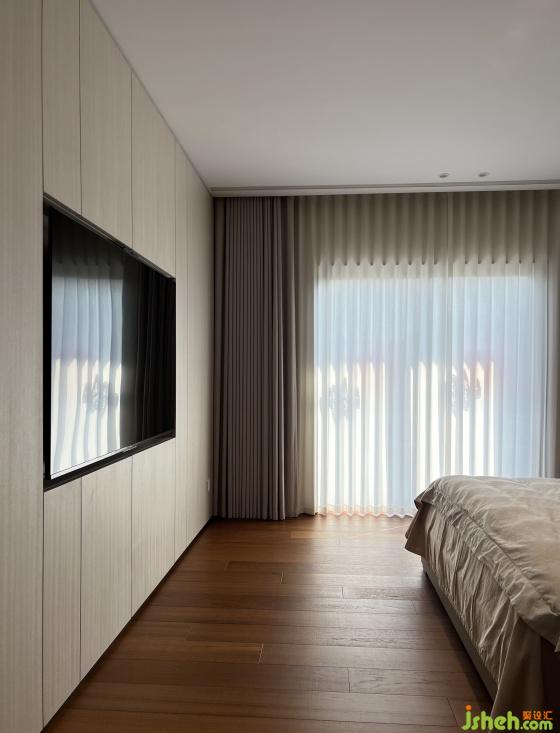 戶外花園部分,考慮南側(cè)臨河且與對岸建物距離較近,透過端景墻與高植栽的布置,營造專屬的私密花園氛圍;而西側(cè)臨水面積較大,則采用通透式欄桿設(shè)計(jì),使視野向外延伸,強(qiáng)化與自然水景的連結(jié)。此外,設(shè)計(jì)中亦規(guī)劃了戶外茶屋與休憩平臺(tái),提供居住者靜心賞景、社交聚會(huì)的多元場域。