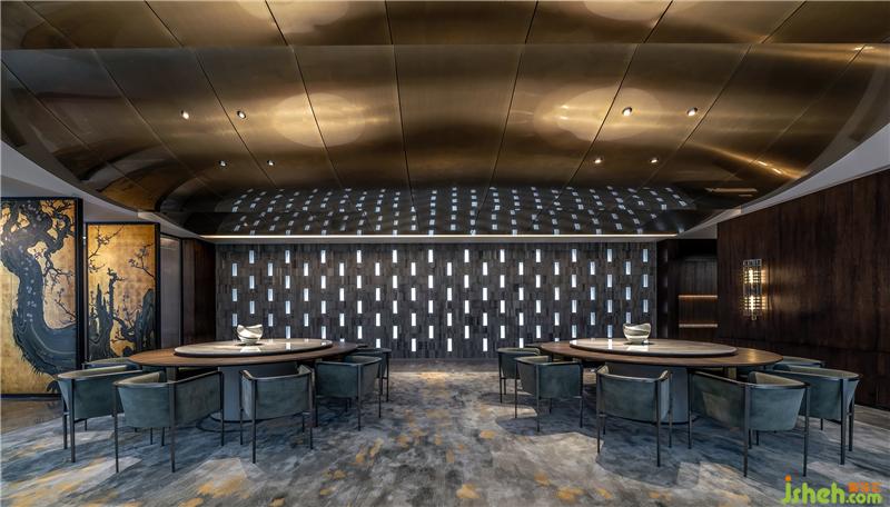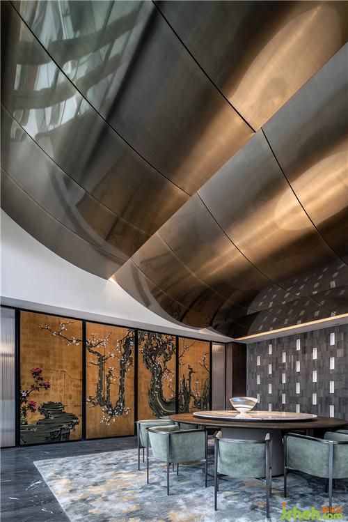 探索一開始就希望這個(gè)空間是個(gè)場(chǎng)景化的空間,有兼具東方元素的雍容華貴感,又能將未來感相融合,就像電影里的場(chǎng)景一般,最后達(dá)成了期望中的效果。會(huì)所設(shè)計(jì)