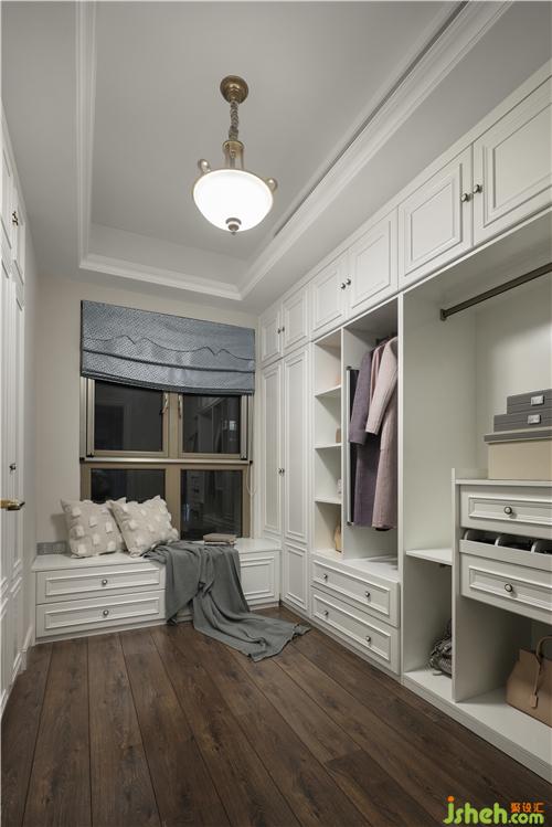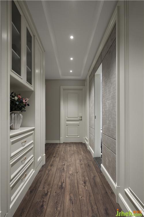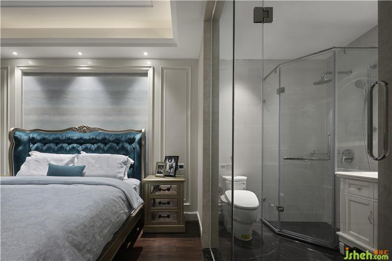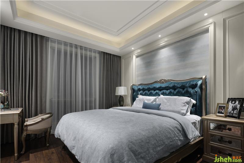 設(shè)計(jì)初期考慮到歐式床具的大尺寸,預(yù)留出足夠的空間,原有的背景墻做歐式框邊會顯得比較局促,走廊的柜體側(cè)邊也會形成設(shè)計(jì)空白,歐式講對稱美感,將傳統(tǒng)框邊設(shè)計(jì)成獨(dú)特的折角造型,工整對稱地分布在臥室四個(gè)角落,讓空間充滿了嚴(yán)謹(jǐn)?shù)木仃囆蛄懈?。歐式豪宅裝修