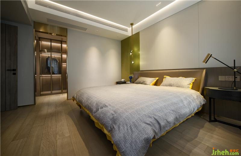 主臥室一般都具有一定的私密性、避光性,配套洗浴,靜謐舒適,與其他空間明顯的分割,是整套房子最私人的空間,完全根據(jù)業(yè)主的要求去設(shè)計。設(shè)計臥室時首先考慮的是讓人感到舒適和安靜??臻g寬敞,1.8的雙人床,同時配套有衣帽間,步入衣帽間進入衛(wèi)生間。臥室設(shè)計的核心是床和衣柜,其他的家具和擺設(shè)根據(jù)需要來添加。床頭墻面用硬包與造型墻板拼塊,簡潔,柔軟,有立體感。家具以及燈光的顏色是暖色調(diào)的。整個空間的和諧能讓人消除一天的疲勞,在柔和的環(huán)境坦然入睡。