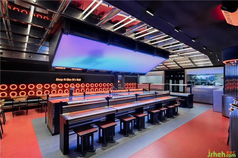 都市人總是在饑腸轆轆的狀態(tài)中尋覓著慰藉身心的居所。對稱、開放的操作間布局讓食客親眼見證餐點(diǎn)烹飪的每一道工序,自動(dòng)化切片、煮面機(jī)等設(shè)備和人工切配、調(diào)味有序合作,現(xiàn)場熬制的湯底散發(fā)出濃郁香氣。杭州餐廳設(shè)計(jì)后廚高效的出餐過程像一場充滿儀式感的表演,讓食客在期待中落座享用。