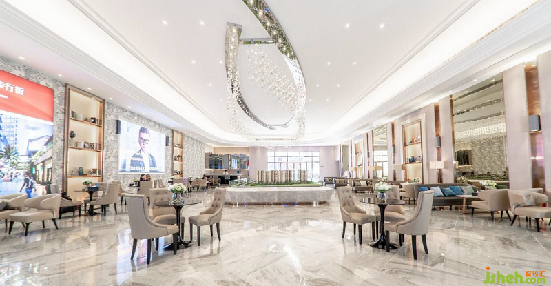 上千顆垂落而下的水晶石匯聚在模型區(qū)上方,如漫天星與辰,點亮空間清與華。