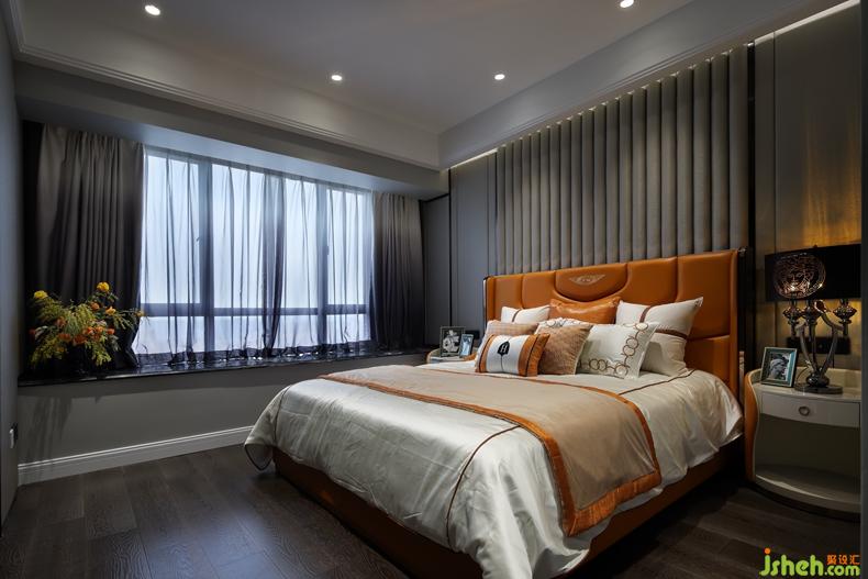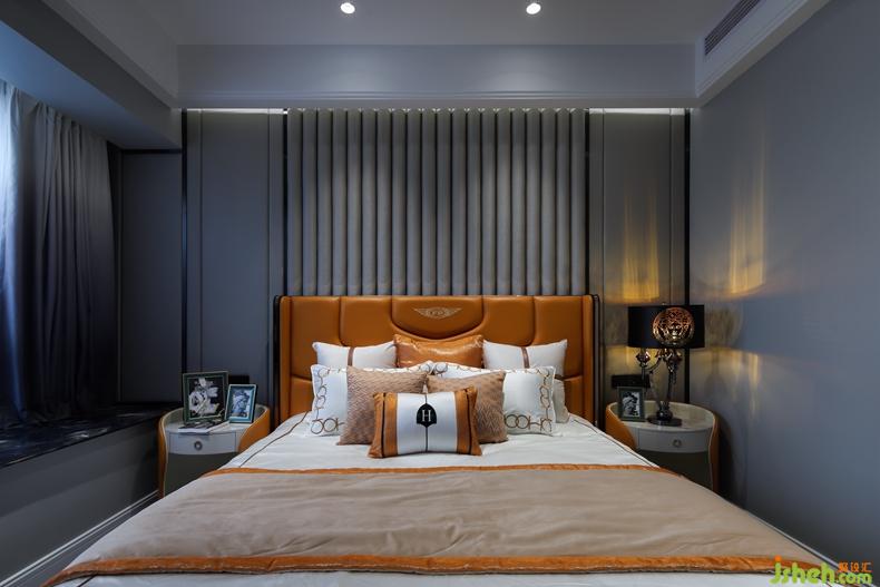 主臥作為睡眠空間,以深淺不一的灰色為基調,輔以橙色點綴,體現(xiàn)多層次的豐富內涵。室內設計師崇尚細致的體驗感,于細節(jié)處綴以藝術的飾品,不經意間觸動人心