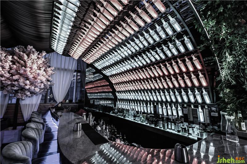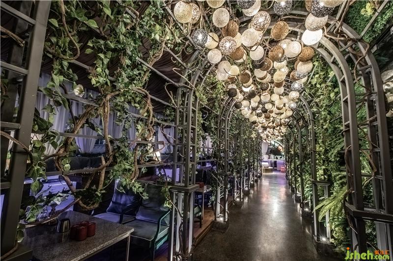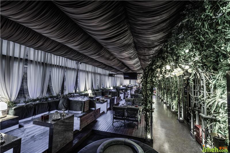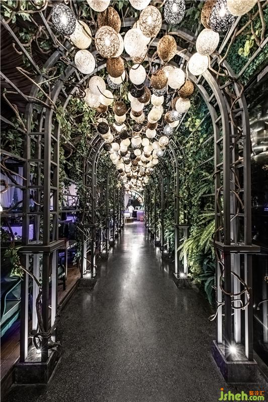 The design of this project focuses on how to integrate multiple forms of entertainment. The designer combines the overall design of the gilt warm light source with the modern fashionable streamlined design, achieving the unity of space. The light source extends to the center of the stage to construct the leisure atmosphere of Lounge bar through the walls with ripple linear cutting. You can see the beautiful green flower planting scenery through the giant glass house in the outer swing area.And the corridor with green plants links the inner and outer space as whole to create a vibrant scene with layers.