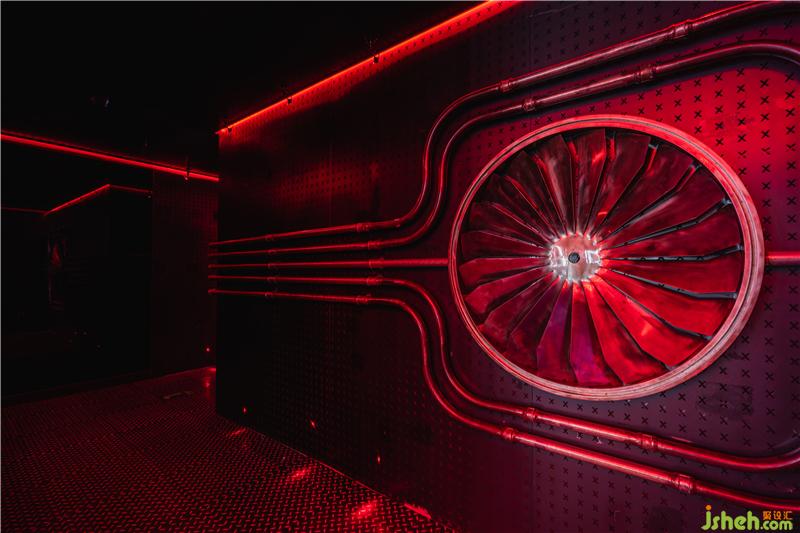 進入大廳則是機艙主體,也是品牌標志性區(qū)域。演出造型樓梯,從正面形成X形序列呼應(yīng)主題,并與大屏組合,形成前層次關(guān)系,整體氣勢磅礴。深圳酒吧設(shè)計在布局上,打破傳統(tǒng)大屏幕的乏味感,改為中間設(shè)吧臺+舞臺,周邊圍卡發(fā)散全場。舞臺前設(shè)置吧臺區(qū),有效的加強了互動性。