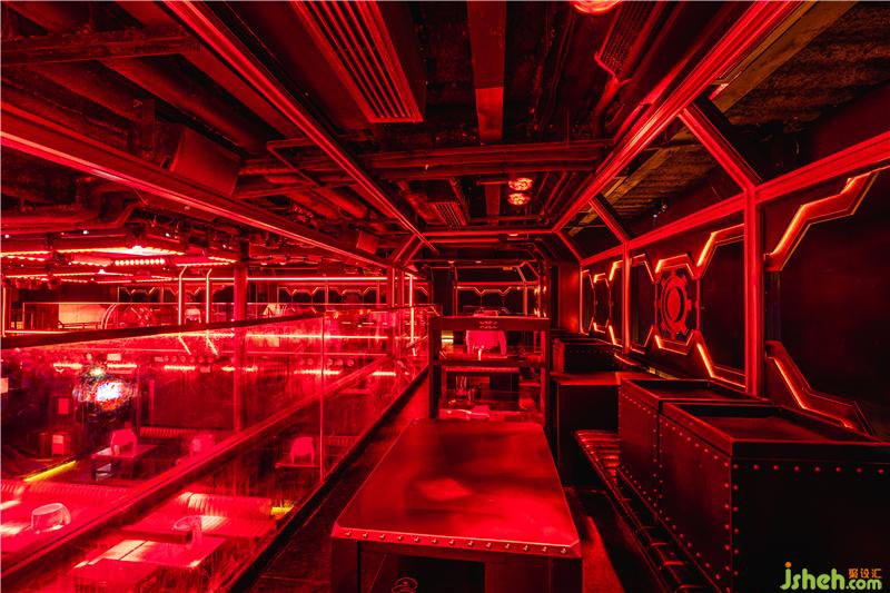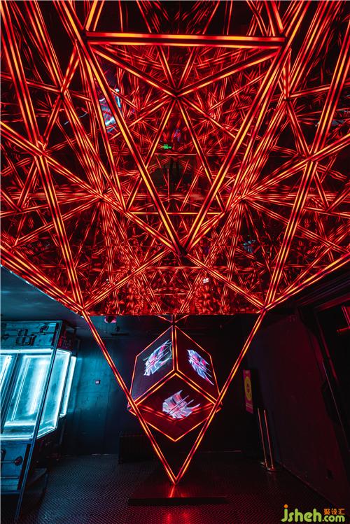 改造從門頭開始,原有的一面墻被改置,處理得通透,對外形成焦點,外觀轉(zhuǎn)角設(shè)挑檐深圳酒吧設(shè)計,放置火星裝置加IP呈現(xiàn)主題,預(yù)示著太空艙開啟。前廳過道猶如按啟動艙。化柱體多,高低差的劣勢為特點,結(jié)合柱體做裝置,天花高處的倒三角造型的燈光藝術(shù)裝置,結(jié)合周圍鏡面反射形成視覺焦點,正對入口設(shè)置立體屏象征著主能量核心。為打造輸送“能量”到大廳的通道,墻面通過鋁管、燈具及風(fēng)葉造型藝術(shù)裝置等引導(dǎo)和輸送,同時用造型鋁板打底墻面,保證機械感的美學(xué)統(tǒng)一性。