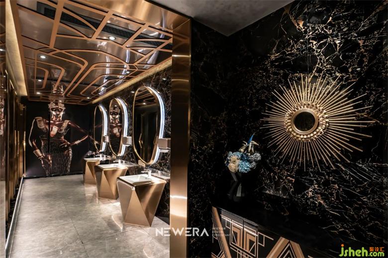 明確了目標(biāo)和目的地,KTV設(shè)計(jì)師道路隨之展現(xiàn)出來。設(shè)計(jì)是道路,是手段。派對空間設(shè)計(jì),即是通過空間組織語言、型制語言、材質(zhì)語言、色彩語言、將項(xiàng)目各方意圖平衡顯化的過程。Art Deco,抽象的幾何藝術(shù),趨于干凈利落的豎向線條,在原則上靈活運(yùn)用重復(fù)、對稱、漸變等美學(xué)法則,強(qiáng)調(diào)速度感、力量感和強(qiáng)烈的裝飾意圖,恰與本案的目標(biāo)不謀而合。而這又遠(yuǎn)遠(yuǎn)不夠的,在Art Deco的框架輪廓下,注入潮流藝術(shù)與具有時(shí)代特點(diǎn)的體驗(yàn)?zāi)J剑攀钦_答案。