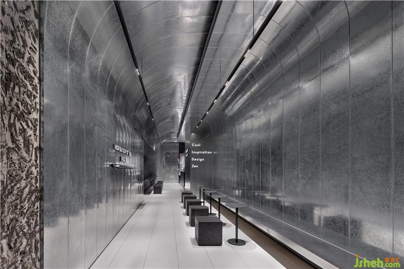 主要材料:鍍鋅板、火山巖、蘋果砂不銹鋼、深色拉絲鋁防火板;