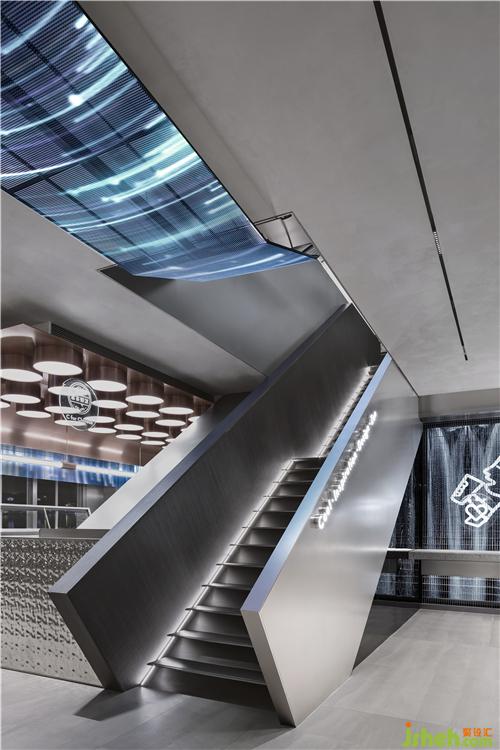 Around the staircase, the metal electronic screens present beautiful scenes of four seasons, reminding people of the limitless vitality and creating an aesthetic connection between customers and the device. When they don’t display special effects, the LED screens also serve as art decorations in the space.
