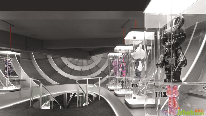 潮玩設(shè)計呼應(yīng)著過去與未來的對話,劃分區(qū)域,指引旅程。