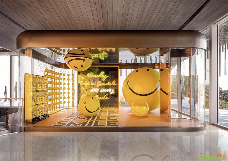 主立麵玻璃磚材料的運(yùn)用,營銷中心設(shè)計(jì)以商業(yè)藝術(shù)化的視覺呈現(xiàn),可調(diào)節(jié)發(fā)光燈箱作為吸睛點(diǎn)的同時(shí),彰顯著“COSMO LIFE”的理念內(nèi)核,讓時(shí)尚成為一種可感知的具象體塊。大型藝術(shù)裝置“都市錶情”,以標(biāo)誌性的笑臉裝置作為商業(yè)氛圍的呈現(xiàn),營銷中心設(shè)計(jì)帶來強(qiáng)烈且有記憶點(diǎn)的視野沖擊,同時(shí)傳達(dá)著積極樂觀的生活態(tài)度:城市需要陽光快樂與積極的態(tài)度!