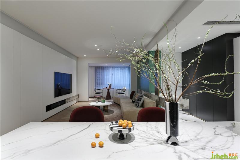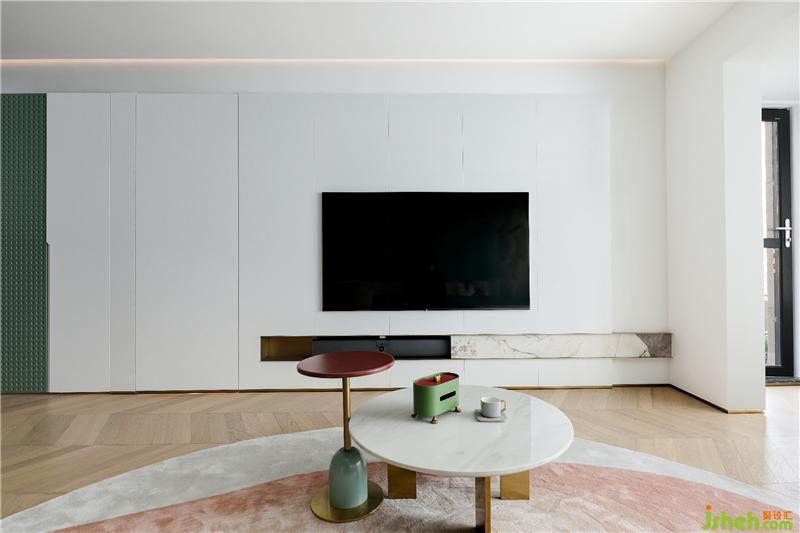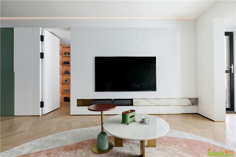 家庭的居住空間,就應(yīng)該契合居住者的生活理念,滿足居住者的生活需求,而定制化設(shè)計(jì),刻畫一個(gè)人與空間的共存關(guān)系??蛷d電視背景墻隱藏衣帽間,擴(kuò)大儲(chǔ)物面積,空間更顯簡(jiǎn)潔清爽。