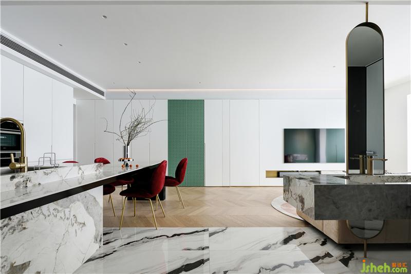 光與影的完美交融,白調(diào)與綠調(diào)的互相映襯,是空間與意境的詩意體驗(yàn),是藝術(shù)與生活的自然鏈接。在休閑區(qū)域的設(shè)計(jì)中,我們以現(xiàn)代主義美學(xué)手法作思維主線,木地板、絲絨沙發(fā)龍巖裝修設(shè)計(jì)、大理石茶幾等不同材料融合運(yùn)用,帶來極具飽滿的美感。軟硬材質(zhì)的合理配比,冷暖色調(diào)的適用,每一個(gè)節(jié)點(diǎn)我們都為之感受自然帶來的舒適與安逸。