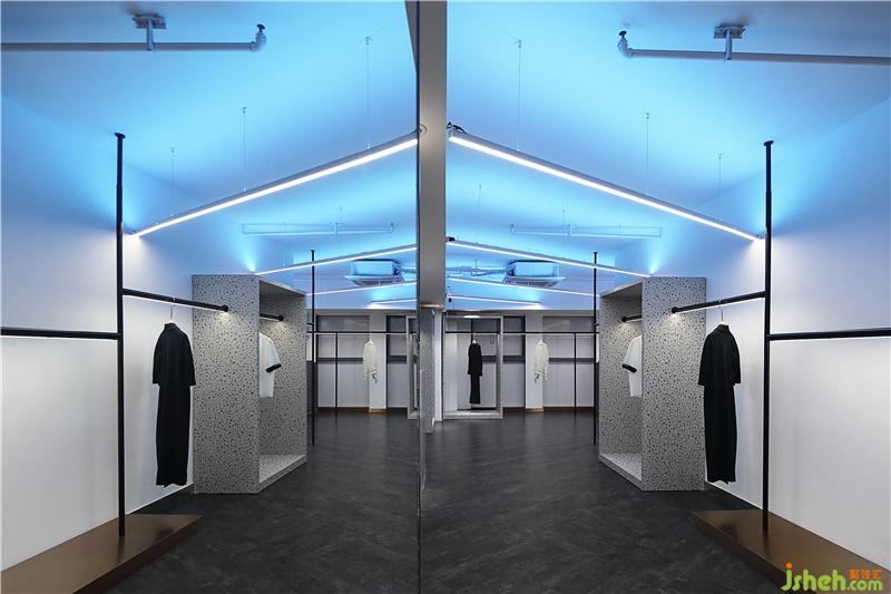 考慮到主體空間為服飾展銷空間,設計師根據空間設置鏡面,增加空間折射產生趣味性的同時,也滿足日??腿耸褂眯枨?。