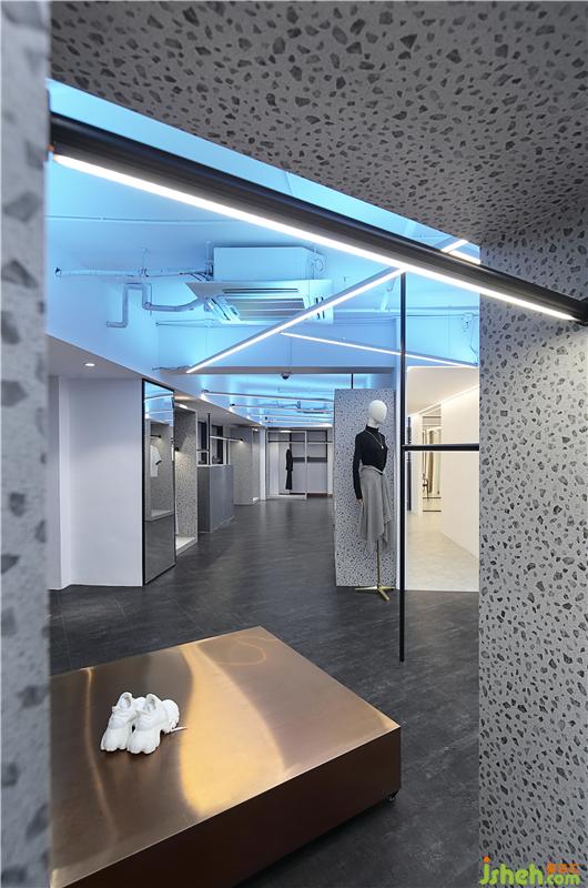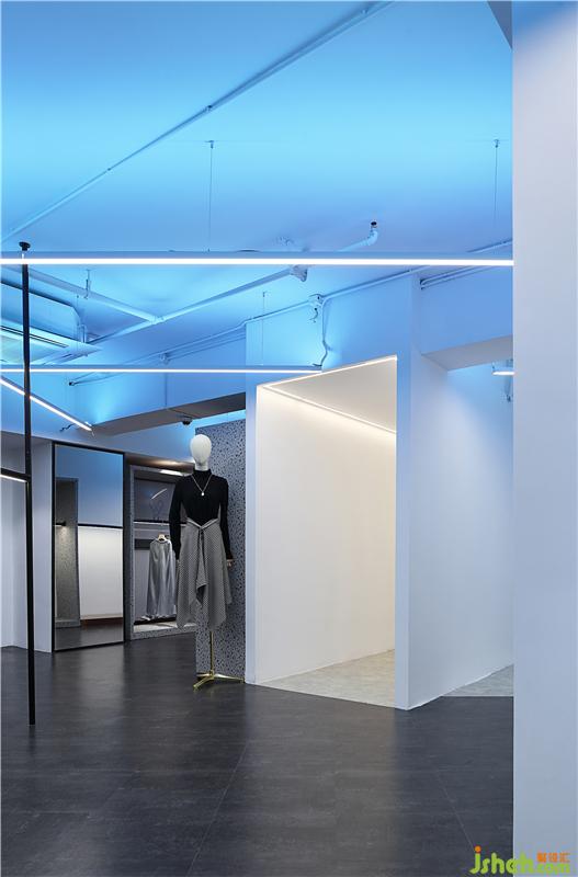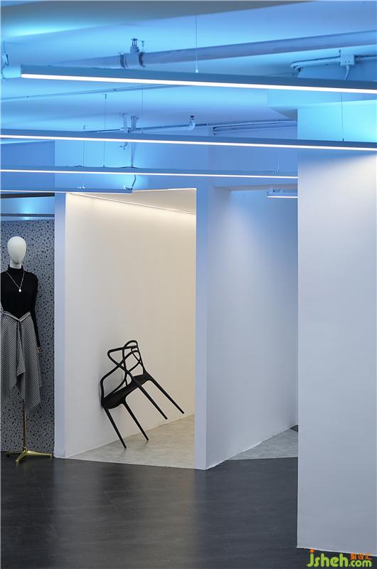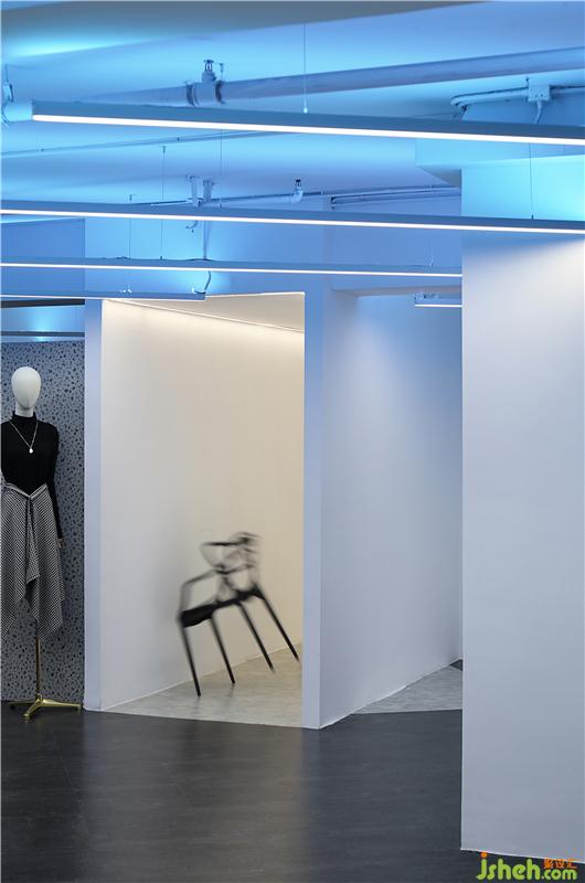 與試衣間鄰近相隔設有一條狹長的矩形通道,設計師亦是運用了景觀設計之中移步換景的方法,賦予其蛻變之道的魂魄。