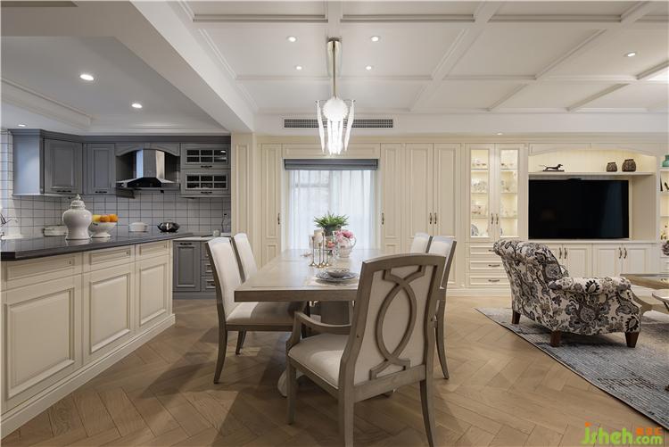 首先從室內(nèi)的格局與下水入手,重新做了規(guī)劃與處理,打破了原先狹窄的廚房空間。運(yùn)用開放式的客餐廳設(shè)計(jì),使得整個(gè)空間開闊敞亮,令人心曠神怡。