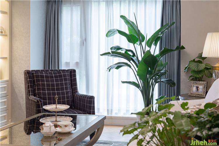 客廳落地窗的設計,做了較大的平面延展。使陽光投射進來的同時,給整間屋子注滿生機,記錄著歲月的沉淀,給人一種非常自然、低奢的美感。