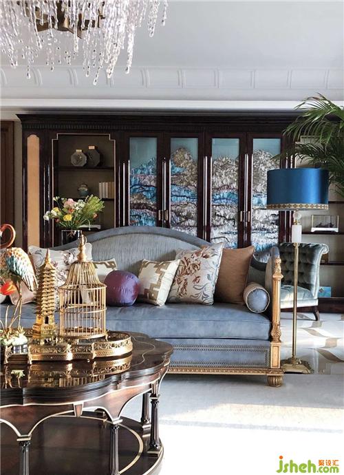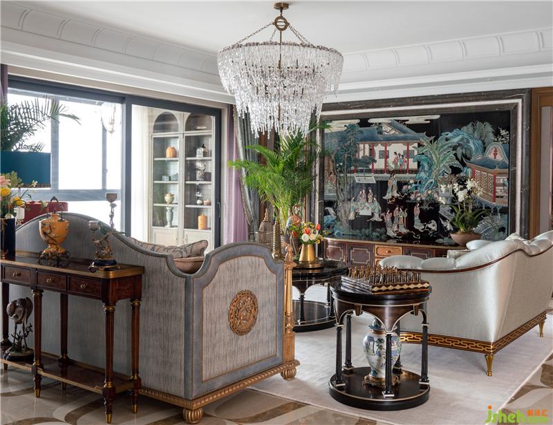 家的整體格調(diào)為文化多元化的混搭和藝術(shù)化的呈現(xiàn),力求在經(jīng)典元素、文化元素、當(dāng)代元素中得以體現(xiàn)。在家中的每一件物品都能體現(xiàn)出他們一家對(duì)于生活品質(zhì)和精致的追求。入門穿過玄關(guān)便是客廳和開放式餐廳,旁邊是家的各個(gè)房間,里面是廚房。豪宅裝修設(shè)計(jì)