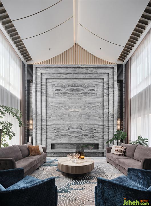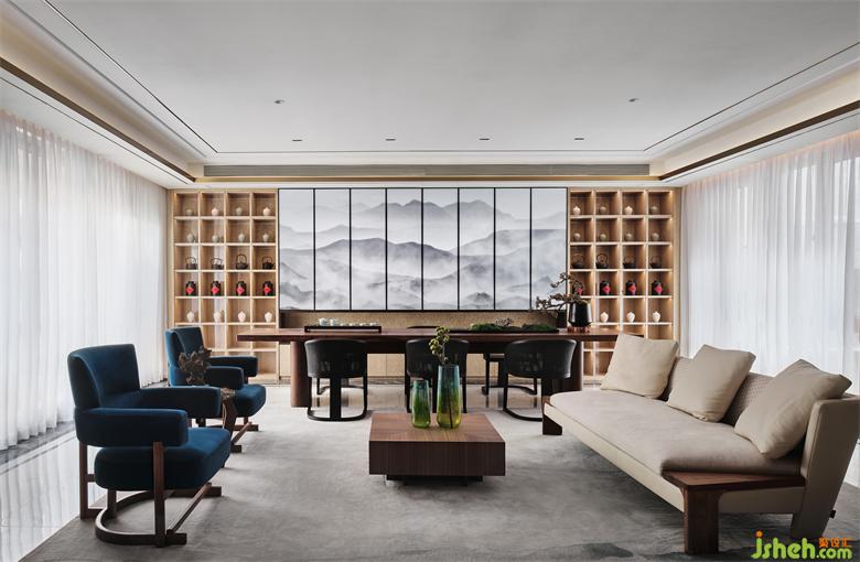 別墅裝修設(shè)計(jì)以東方詩意為手法,設(shè)計(jì)師擷取山、水、圓等元素,造境成畫,用四重雅韻空間,盛滿三世同堂的生活意趣。