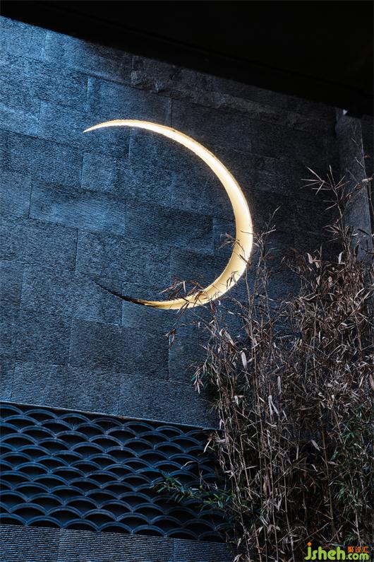月牙攜清風(fēng),院落載春秋。月光青瓦相互交融,原始材料的肌理被真實(shí)呈現(xiàn),別墅裝修設(shè)計(jì)師運(yùn)用傳統(tǒng)東方造園元素,塑造“返璞自然”的風(fēng)雅院落,既建立建筑與外界的自然糅合,也回應(yīng)居者對都市隱居生活的向往。
