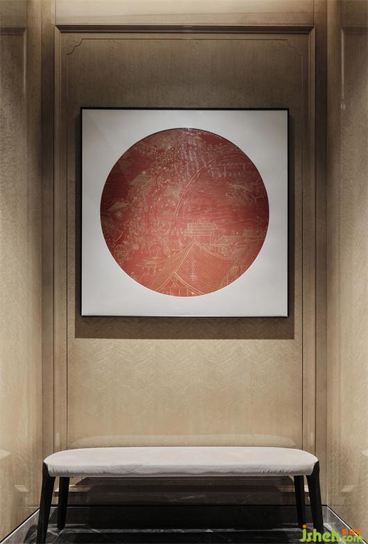 方寸間,紅色漆器木柜靜臥一隅,結(jié)合中國傳統(tǒng)與西方古典元素定制打造,詮釋了新中式的更多可能性。別墅裝修設(shè)計(jì)墻面天然的雀眼木作,置于天地雙圓之間,使空間充盈著悠然氣息,步履匆匆的歸人,頃刻便消解了煩擾。