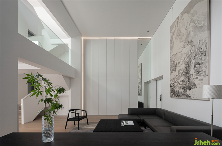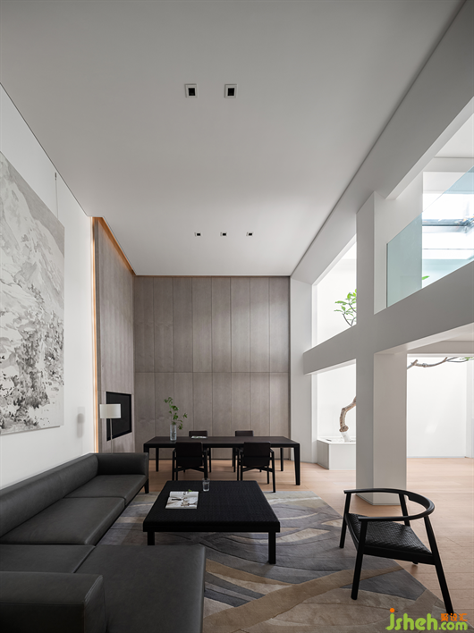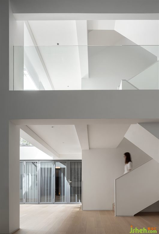 于是設(shè)計師大膽地將下沉式天井打通,利用玻璃將光線引入地下,一來解決采光的問題,將自然的氣息帶入閉塞的空間,二來讓擴充了空間使用率,行動起來更加寬敞。