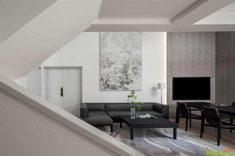 因夫婦二人在家也時常一起辦公或接待,但生活中很難回避有人在說話、小孩在奔跑的場景,所以需要一個相對獨立且自由的區(qū)域,設(shè)計師將它安置于負二樓。