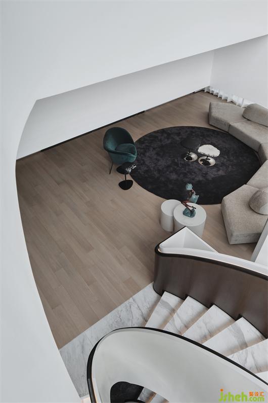 獨(dú)棟別墅設(shè)計師陳熠:“我希望陽光從早晨的東方冉冉升起,到西山的落下,在樓梯呈現(xiàn)的光影變化給每層空間帶來不一樣的視覺效果,也把最大化的采光給到每一層?!弊匀还馐莿e墅空間的靈魂索引,依循光影一天內(nèi)在建筑的變化軌跡,我們重新梳理空間與光的關(guān)系。