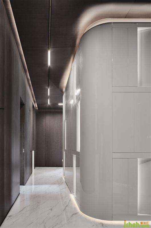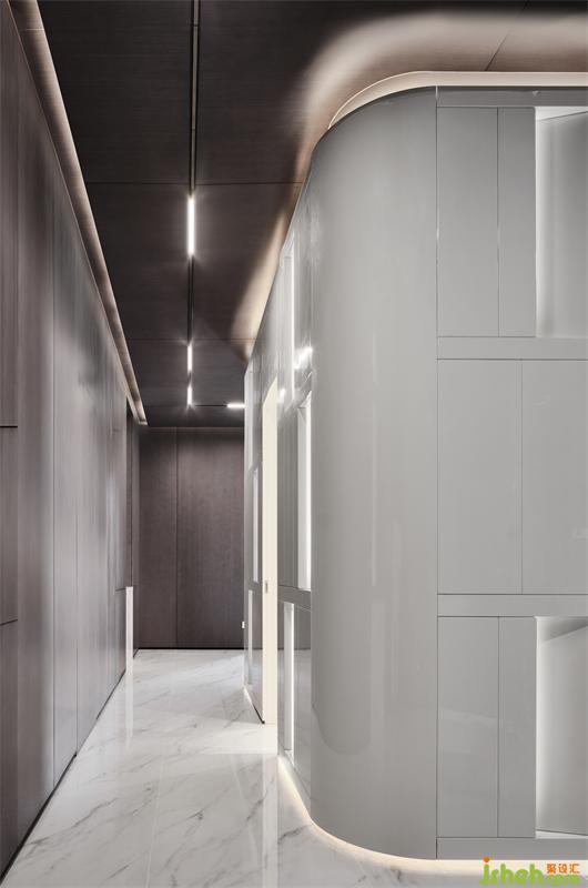穿過前院,拾階而上,遇見一隅讓人重獲力量的安適,莫爾說:走遍天涯覓不到自己所需的人,回到家就發(fā)現(xiàn)它了。進(jìn)入門廳,獨(dú)棟別墅設(shè)計環(huán)形藝術(shù)裝置“白盒子”相迎,純粹且融洽的幾抹燈光,便令居者有洗盡鉛華,回歸生活之感。